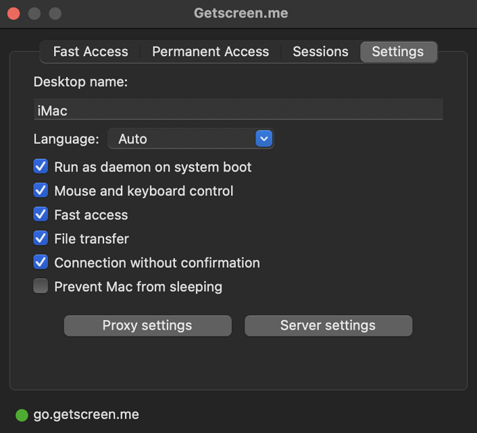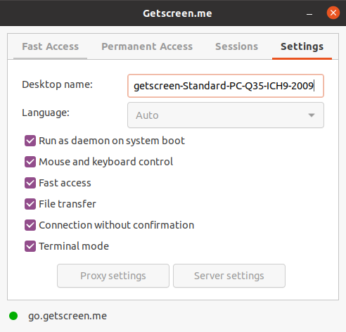 These settings are used when the device running the application connects to the Internet through a proxy server. You can specify authentication parameters for the application to connect to the Getscreen.me server via the proxy.