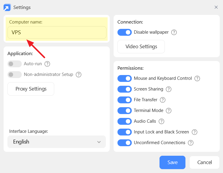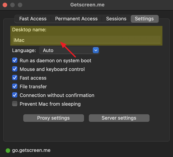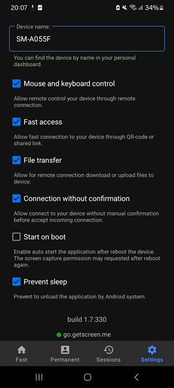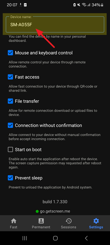 If permanent access is configured, this name will appear in the list of devices in the administrator’s dashboard. The synchronization also works both ways — if the administrator changes the device name in the dashboard, it will automatically update in the application as well.