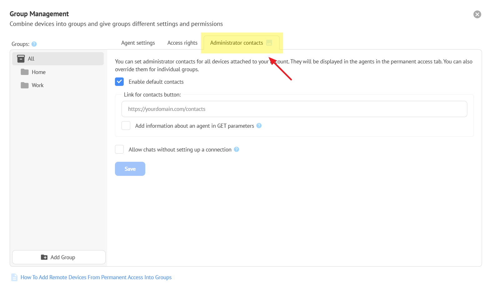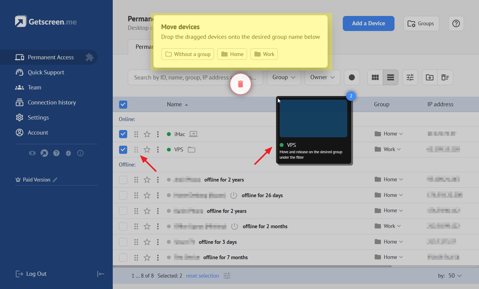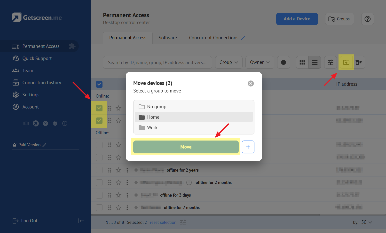 The account owner can categorize agents into groups, for example, by company or department name. This will help you find the right device to connect to and provide assistance faster.