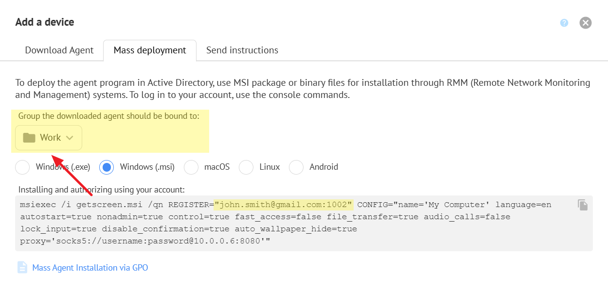 Learn more about bulk device deployment in the article Installing Agents via GPO (Mass Deployment)