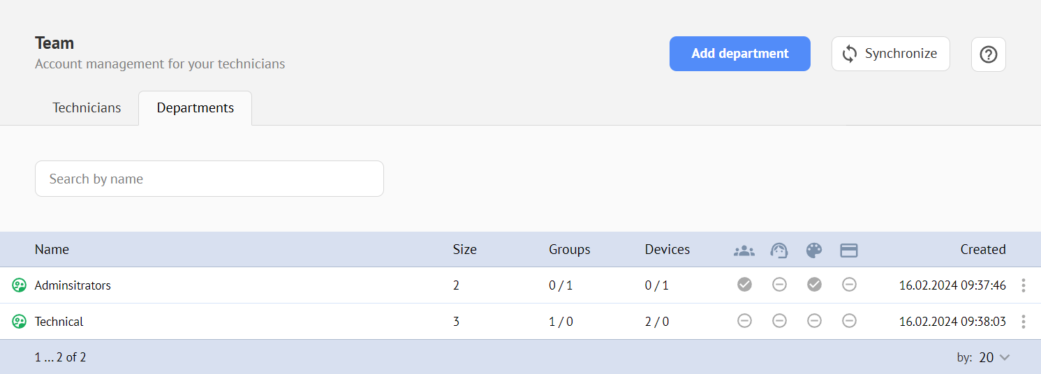 Departments that are linked to a group from AD will be marked with the icon, and all users will inherit the permissions of this department.
