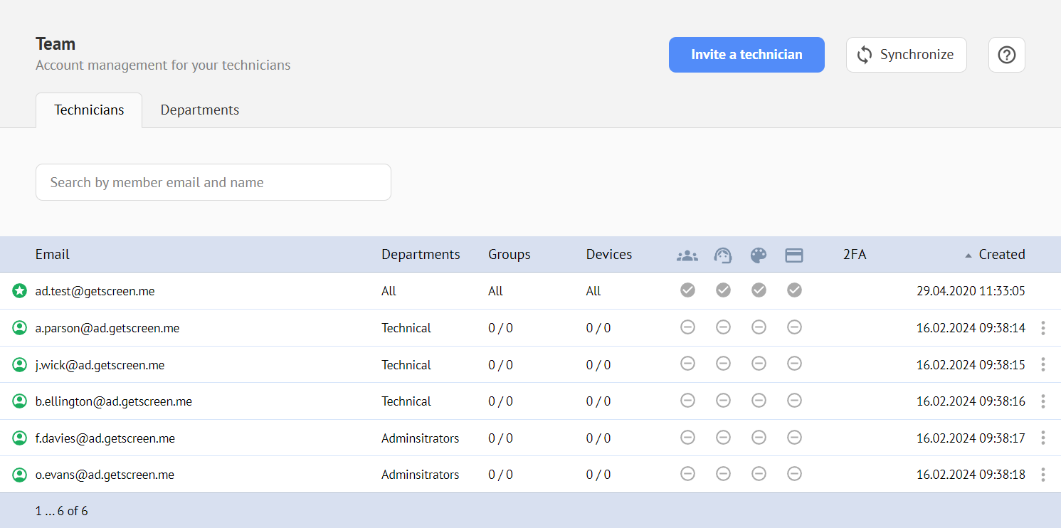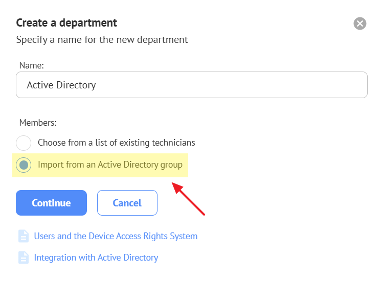 This way, the group from AD will be linked to the department in Getscreen.me. After creating the department, your users will be imported into it and inherit all the permissions of the selected department.