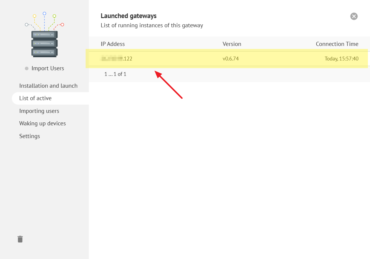 Your running instance will then appear in the Launched gateways tab of the gateway card: