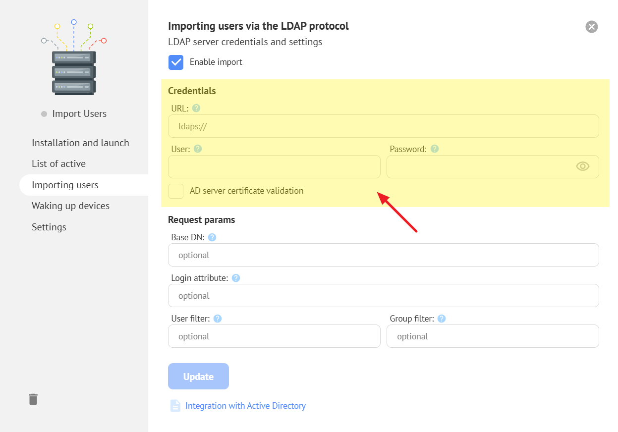 If the accounts of your operators and administrators are already set up in your local Active Directory , you can import them into users within our system. They will be able to log in to their personal accounts using the same usernames and passwords.