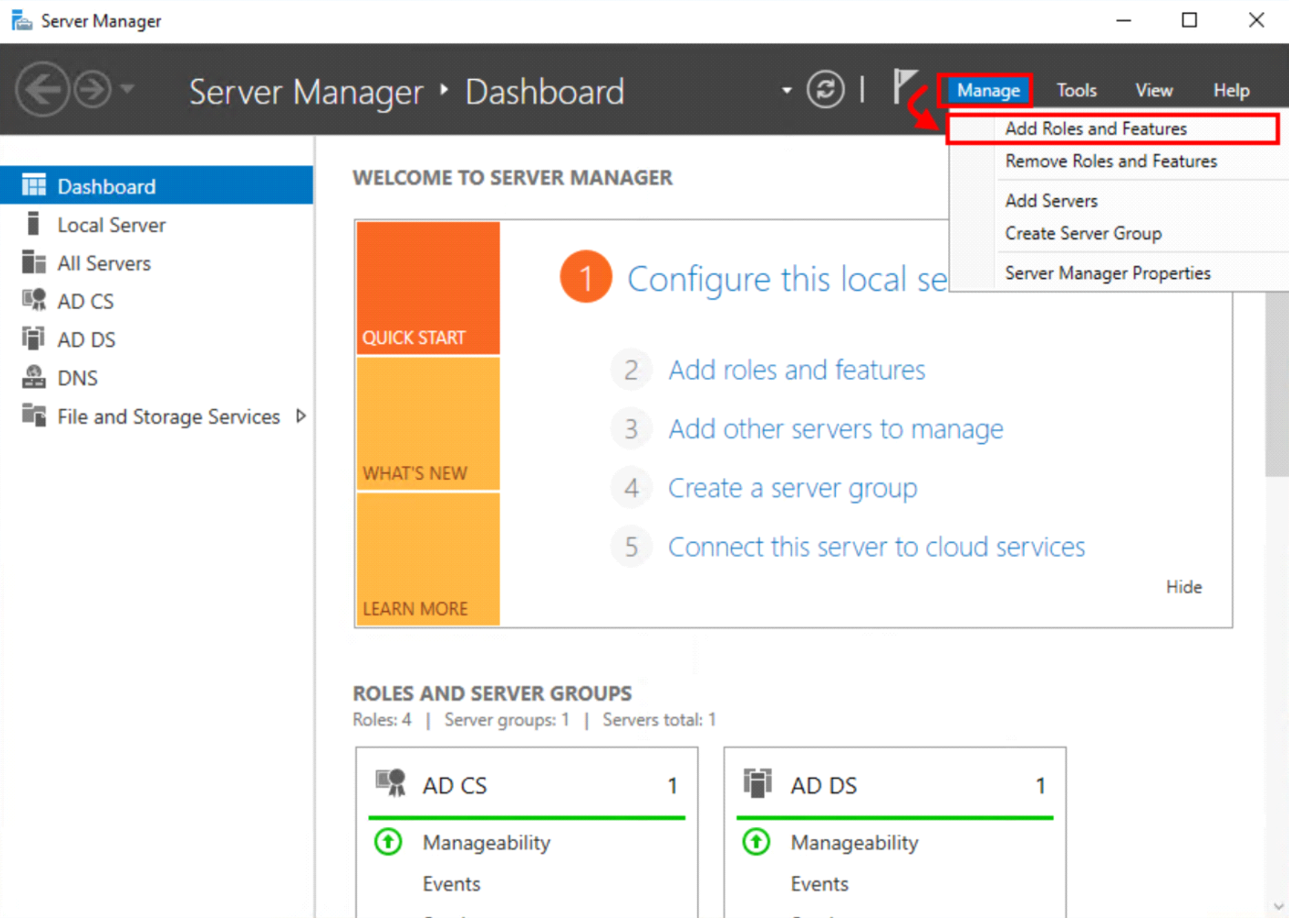 If the functionality is not installed, go to Server Manager and then Add Roles and Features: