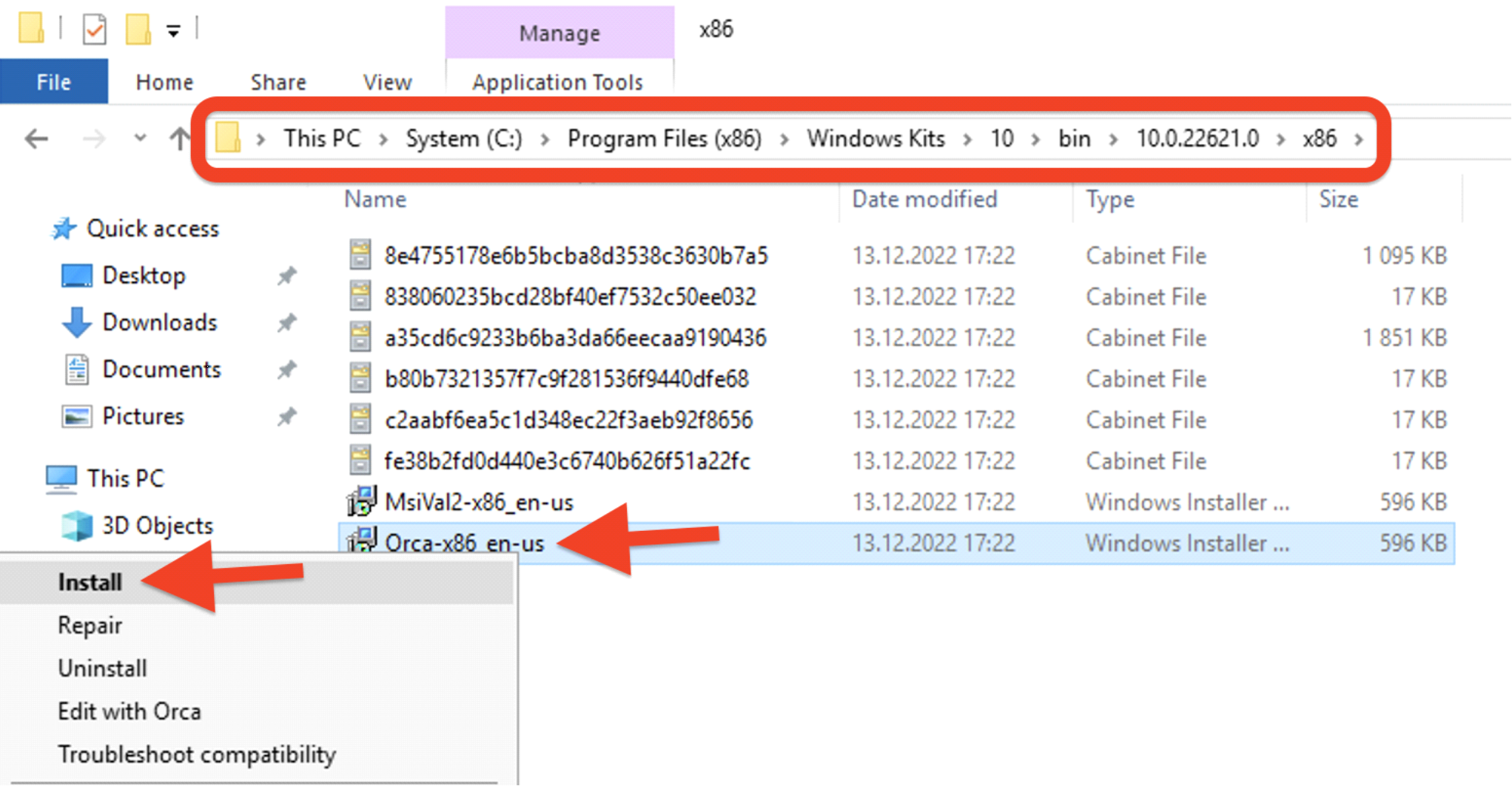 After installing, go to the directory in the screenshot below and run the Orca installer: