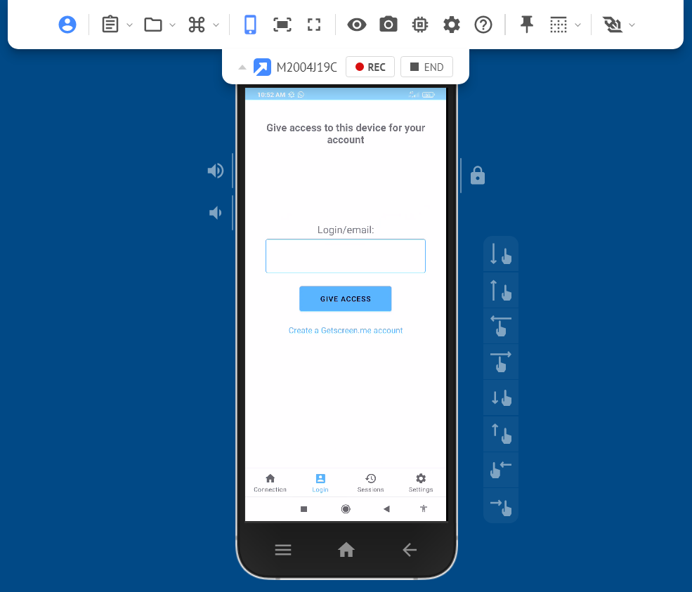 The functionality of the Getscreen.me mobile version is slightly different from the desktop one. Apart from the basic features, the mobile version also contains additional settings adapted for mobile devices.