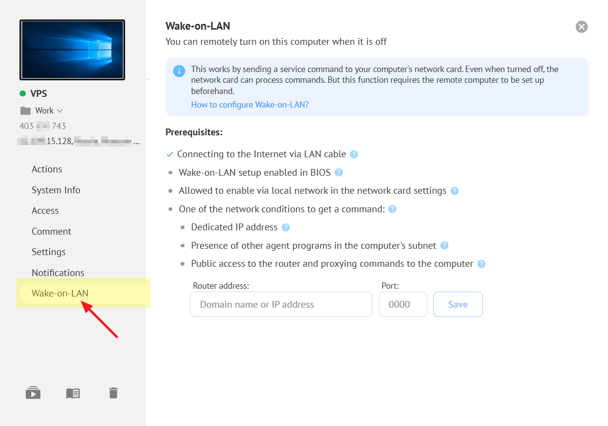 Learn more in the article How to Configure Wake-on-LAN.