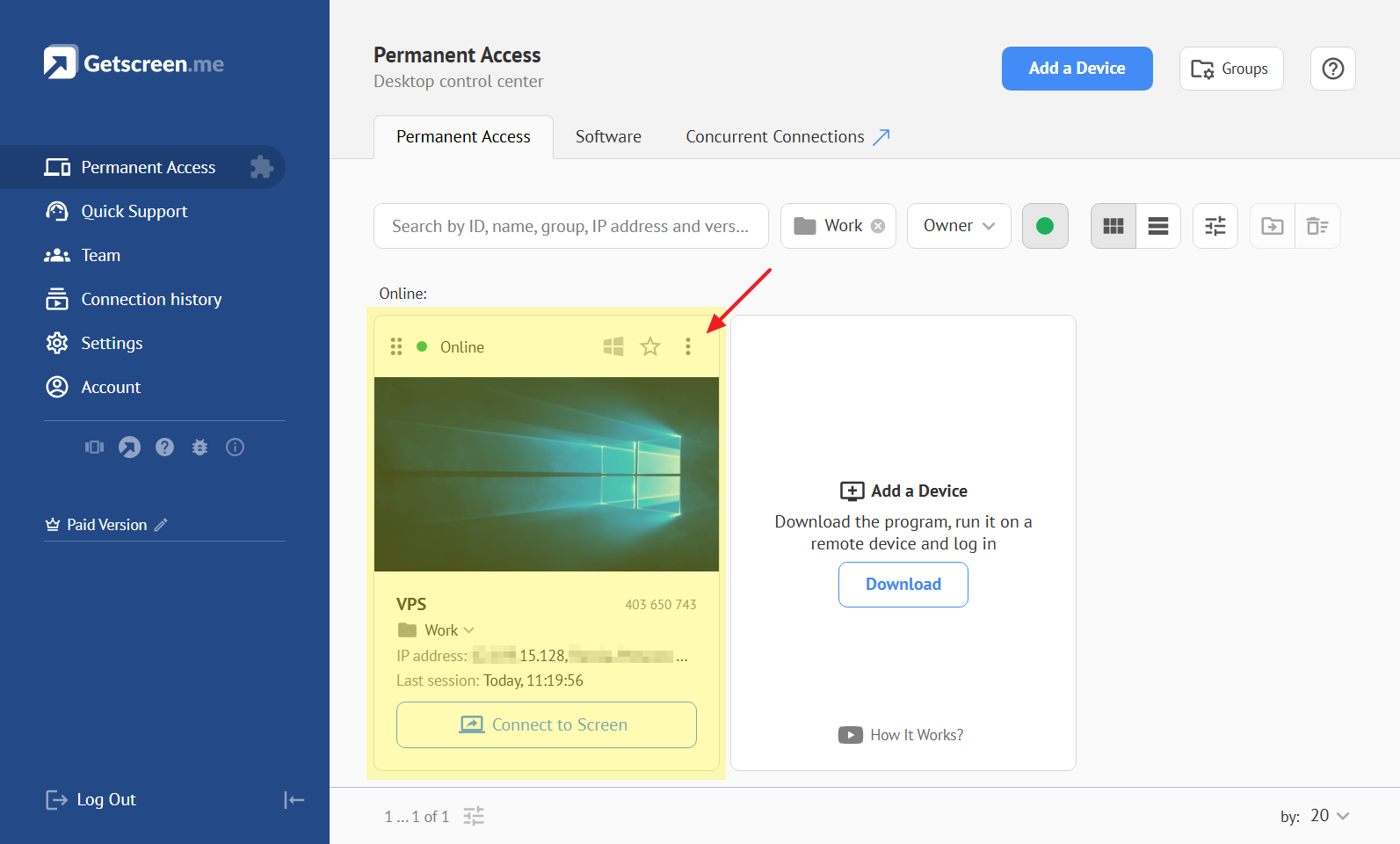 Once installed, your computer will appear in the Permanent Access list.