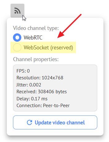 You can also switch the channel during an active session. Open the channel settings panel, select WebSocket, and the system will remember this preference — it will be used by default for future connections to this device.