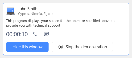 Once the client accepts the invitation and runs the attached agent file, the session is automatically initialized. The client will see a special lightweight version of the agent program with no extra features.