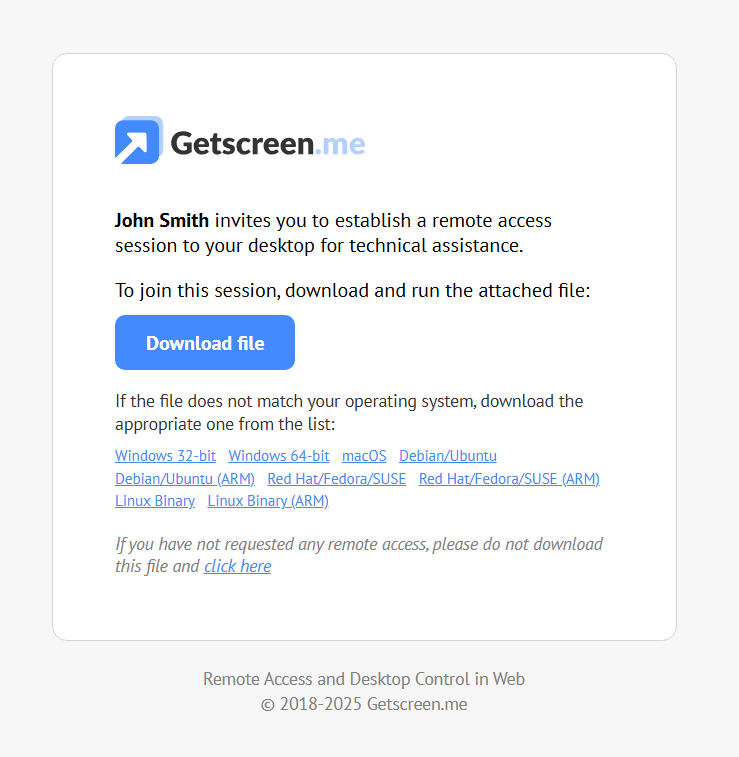 After the session ends, the invitation file is automatically removed from the client’s device.