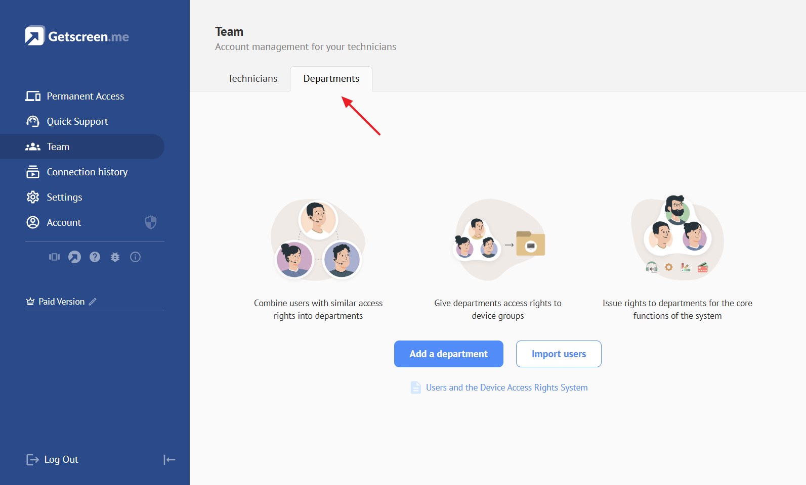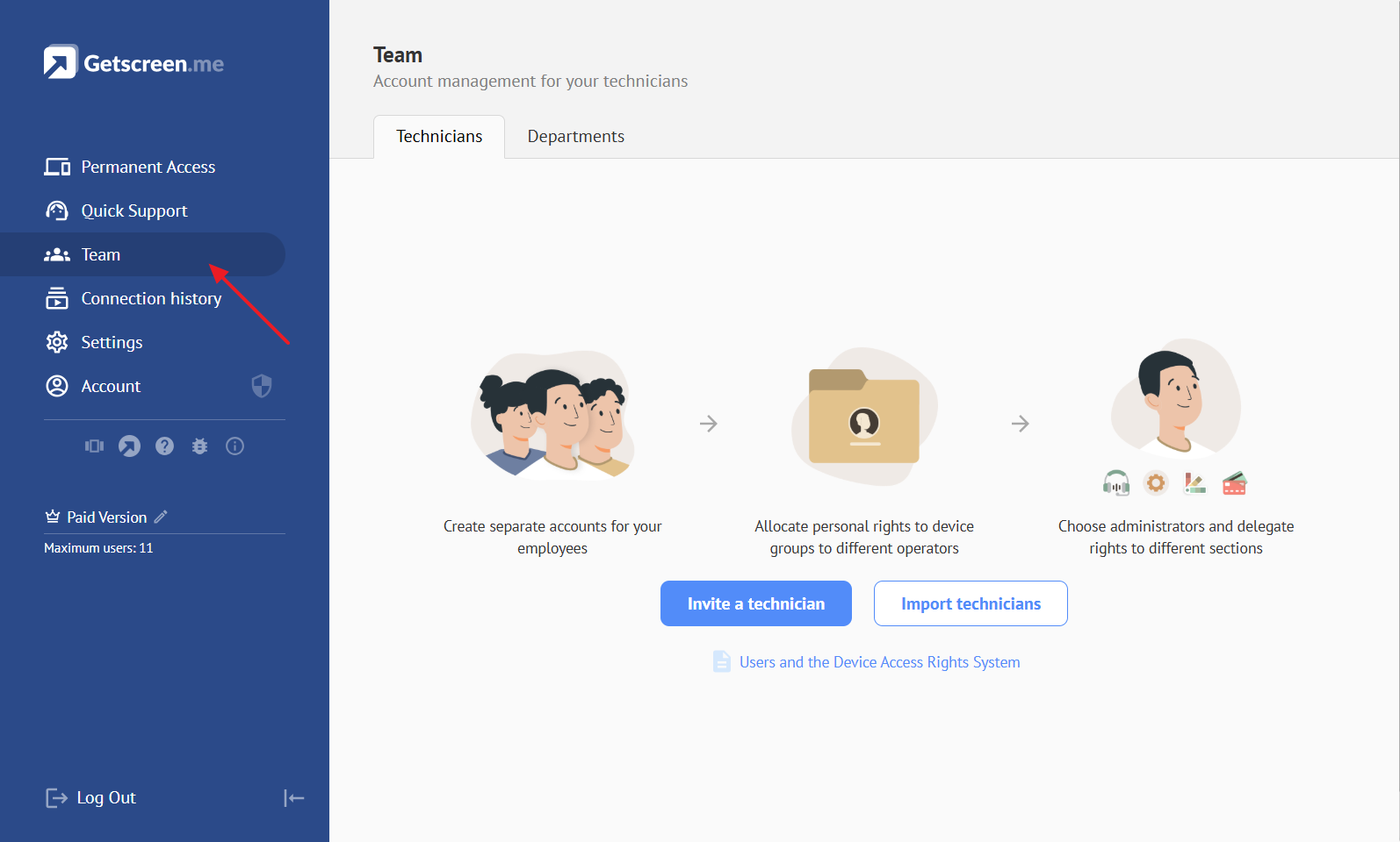 Do you have a team of support specialists? You can create additional accounts for your staff and delegate device management and other system features to them. In our system, these employee accounts are called technicians.