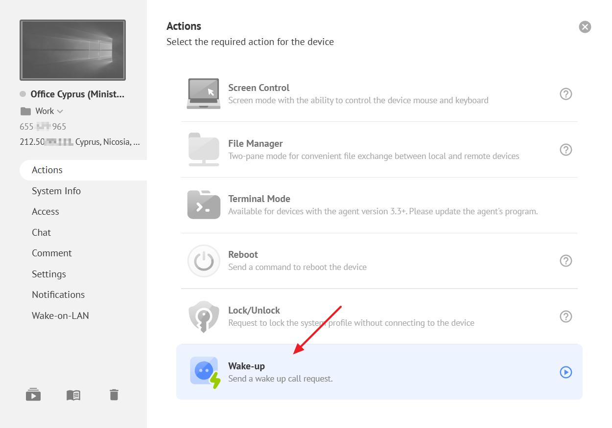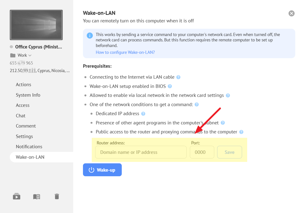 The Server looks for running agent programs online in the same local network as the target device. If such “neighbor” devices are found, the Server asks them to send the wake-up command. This works if your local network settings allow communication between devices.